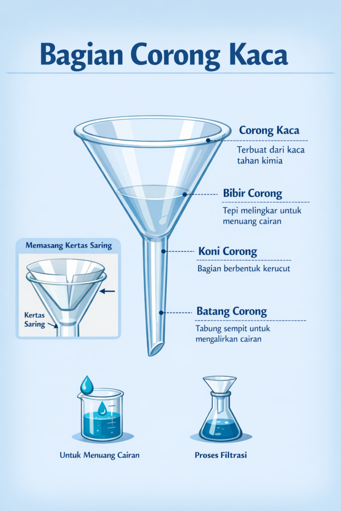 Berikut bagian-bagian corong kaca beserta penjelasannya secara jelas dan mudah dipahami ๐